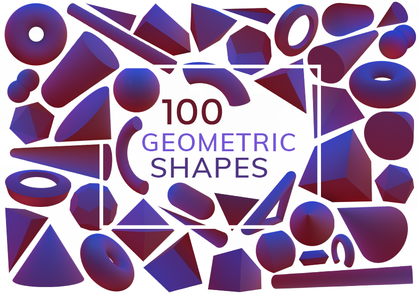 100 3D geometric shapes rendered in .png format to realize your futuristic visuals.